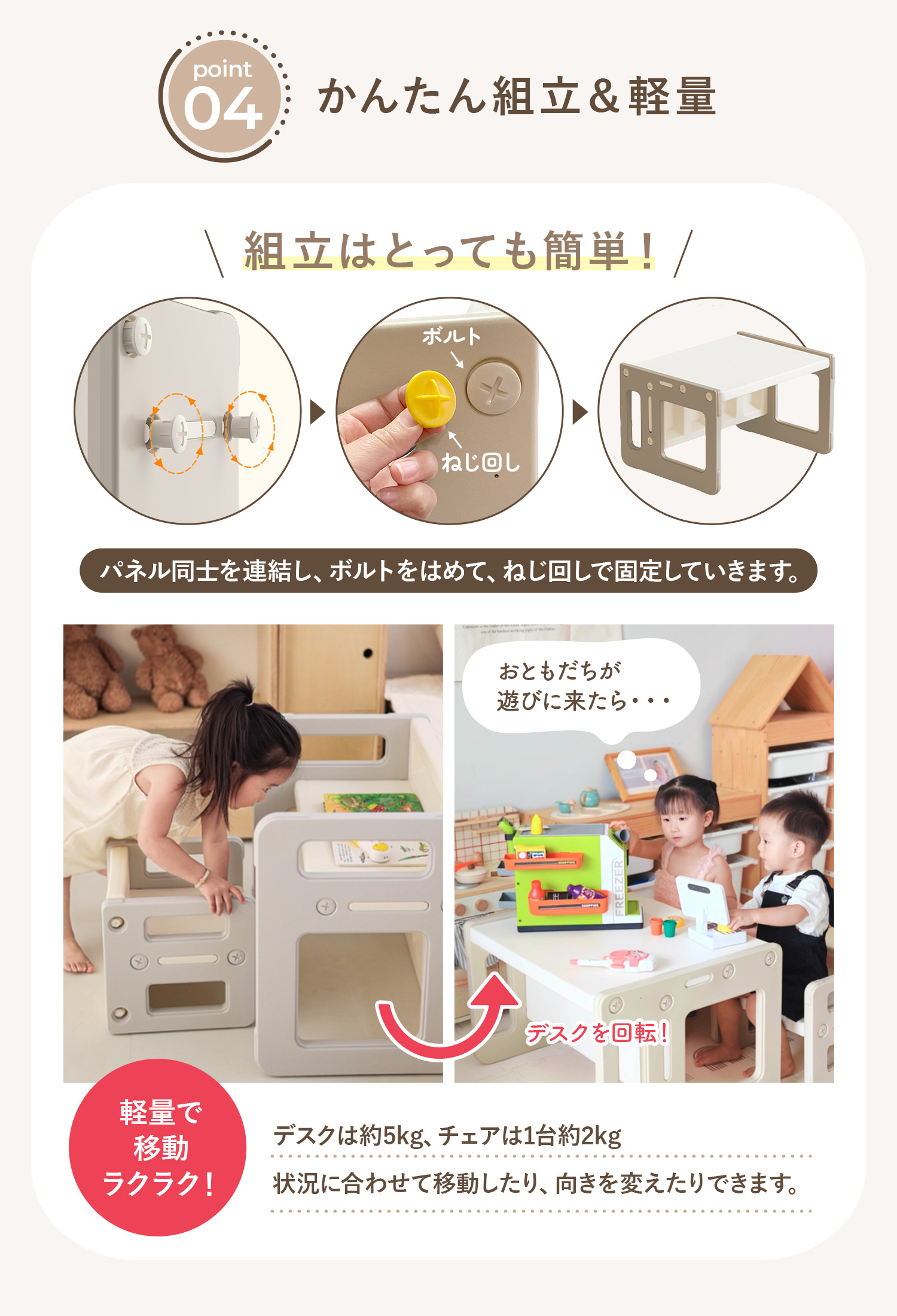 移動のしやすい軽量タイプで、お子さまの成長に合わせて使い方を変えられるものが良いという