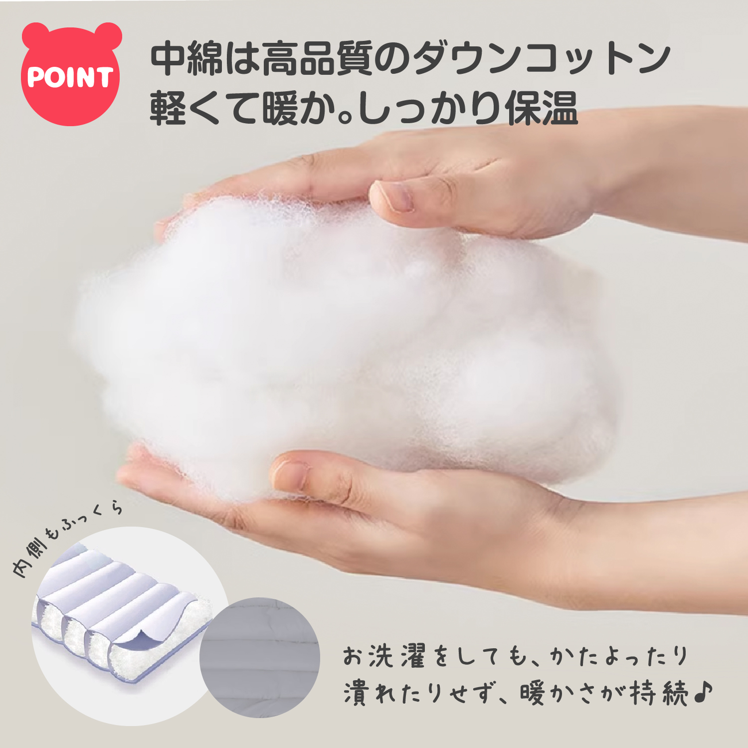 中綿:綿90%、ポリエステル10%