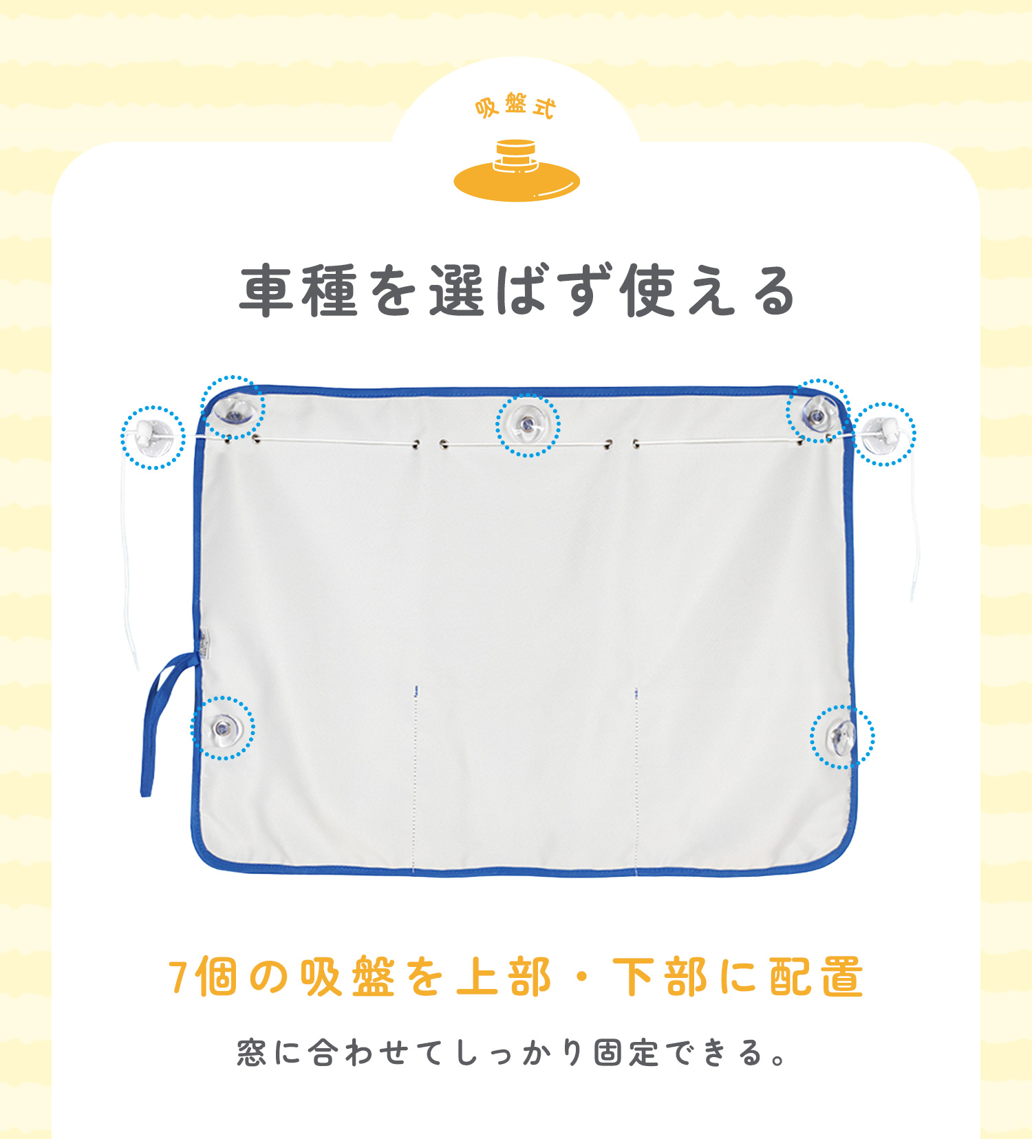 車内を明るい印象にし、移動時間を楽しい空間に演出します。2枚使いで左右の窓をまとめてカバーすることも可能です。