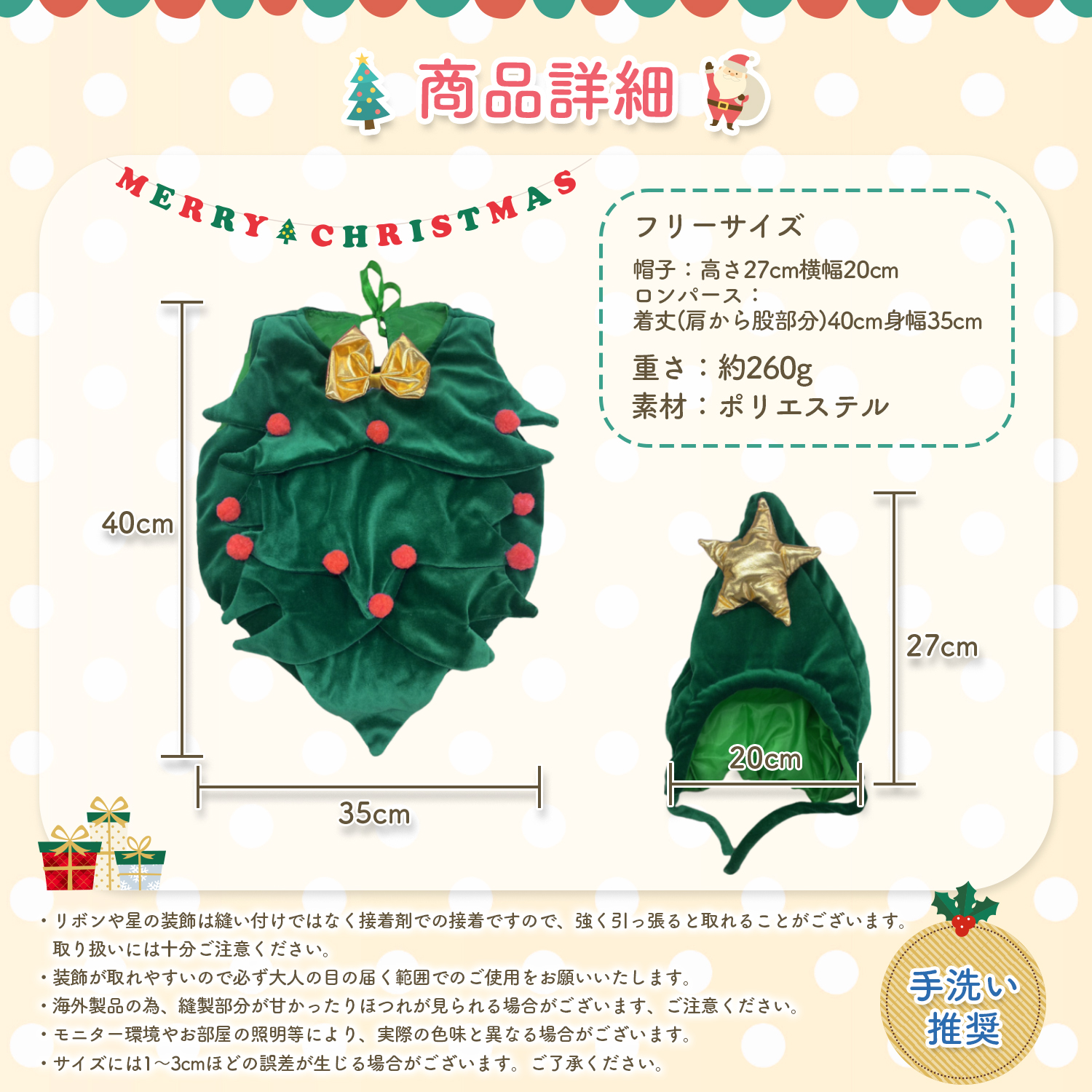 リボンや星の装飾は縫い付けではなく接着剤での接着ですので、強く引っ張ると取れることがございます。取り扱いには十分ご注意ください。