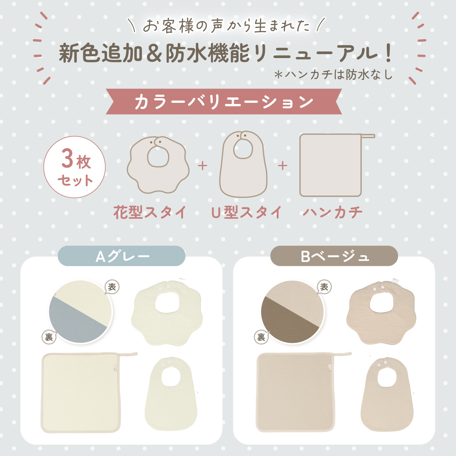 花型・U型・ハンカチの3タイプを組み合わせたセット。