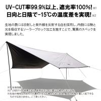 使い勝手のいい幅440cmのヘキサ型タープに、炎天下の強烈な日差しを遮るソーラーブロック加工を施した生地を採用。 驚異のUVCUT率99.9%以上・遮光率100%で、日向と日陰で最大15℃の温度差を生みだす(※LOGOS調べ)。 耐風性にもすぐれた構造。