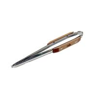 長さ30cmとコンパクトで、缶ストーブでの調理や焚き火にぴったりサイズ。 先端に開き止めフック加工を施し、収納もコンパクトに。 ステンレス製でサビにくく、軽い力でもしっかりとつかめます。 木柄には国産ヒノキを使用。 オイルステイン加工済。
