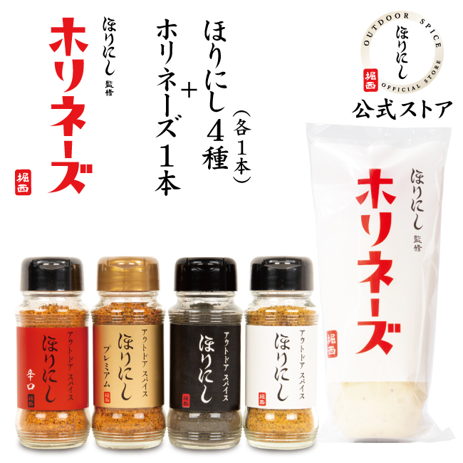 | 商品名 | ほりにし監修 ホリネーズ 1本+アウトドアスパイス ほりにし 4種 (白+赤+金+黒) |
