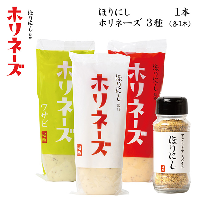| 商品名 | ほりにし監修 ホリネーズ+ほりにし監修 ホリネーズ辛口+ほりにし監修 ホリネーズワサビ+アウトドアスパイス ほりにし |