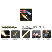 詳細:風に強いターボ式ライター セイフティロック付。吊り下げ用フック穴付。ガス残量確認窓付。 アウトドアレジャー、花火・線香の着火に ※炎調整機能はありません。 ※使い切りタイプです。