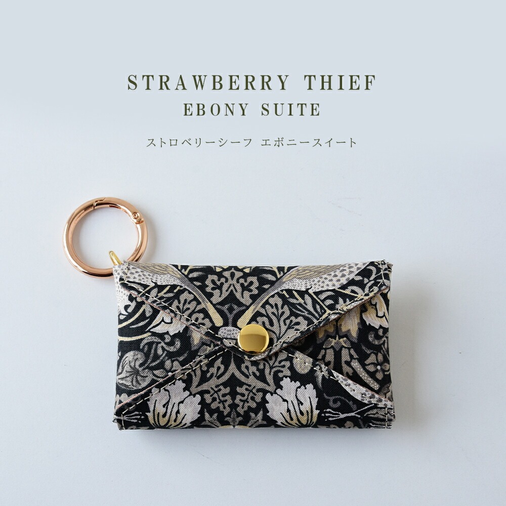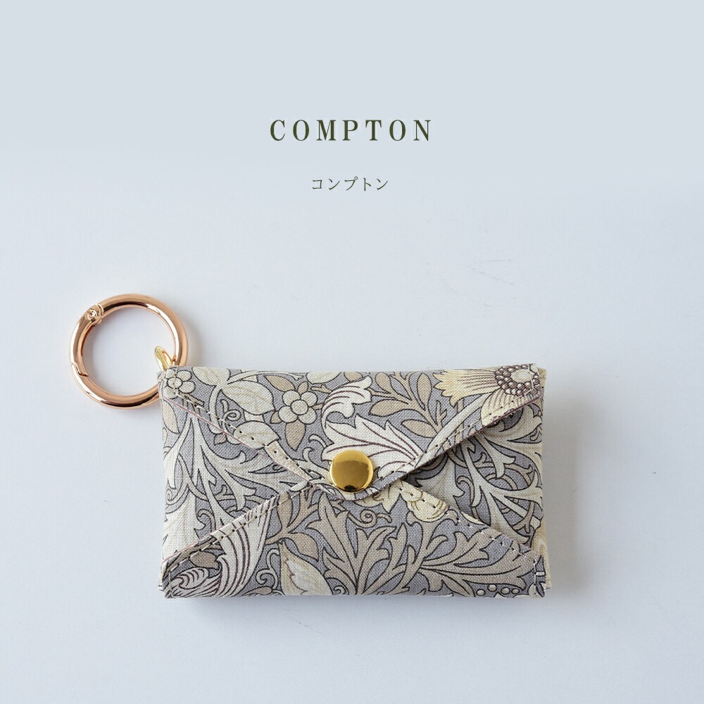 | 商品詳細 | 「ウィリアムモリスシーチング生地」と「本革」を組み合わせたカラビナ付きのミニマルチポーチです。 綿100%のモリスシーチング生地を内外両面に使い、間の芯材として本革を使用しています。 留め部分はカード類を入れていただいた際に磁気カード等への影響がないよう「マグネット不使用」でお作りしています。 ホックは強く押し込まなくていいようにできる限り「軽い力で開閉できるもの」を採用。 カラビナ付きなので、バッグの取っ手部分やスマホショルダーなどにも取付け可能です。 スマートキー、イヤホン、コスメ、アクセサリー類などちょっとした小物を収納するのにとっても便利です。 |