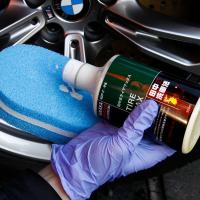 水性のタイヤワックス、劣化なしで安心、真の黒さが蘇るタイヤワックスです。