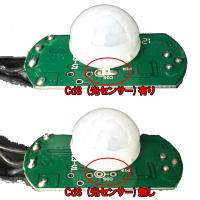 ■昼間も反応させたい場合には、写真にあるCdSセンサーに黒テープで光を遮蔽するか、センサーを切り離してもらえば、常時反応可が可能