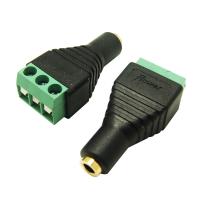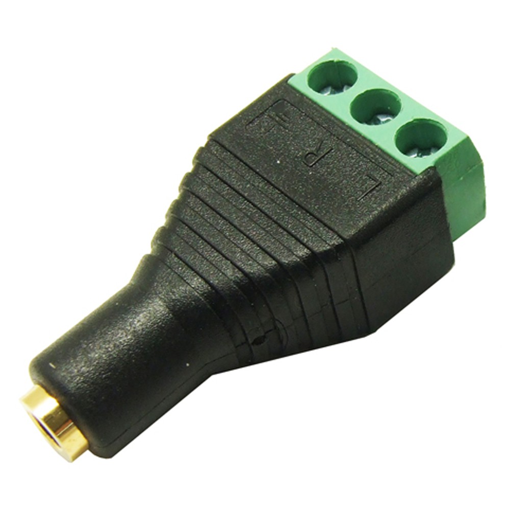 2.5mmミニステレオジャック3極(メス)から5.08mmピッチ3ピン端子台への変換コネクタ。
