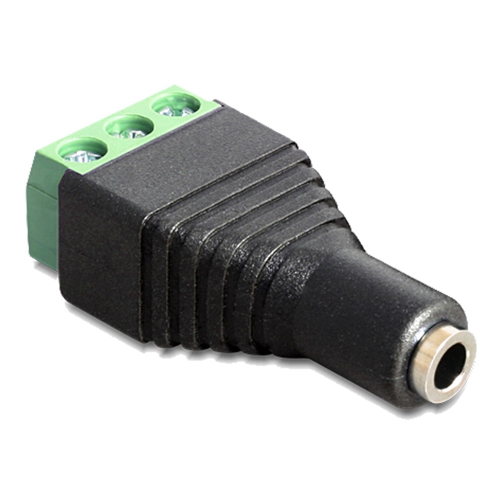 3.5mm3極のステレオプラグを本ジャックに挿入することで、5.08mmピッチ3ピン端子台へ変換できるコネクタ