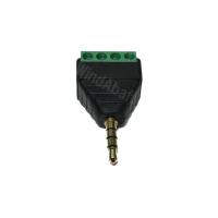 3.5mmミニステレオプラグ4極(オス)から5.08mmピッチ4ピン端子台への変換コネクタ。