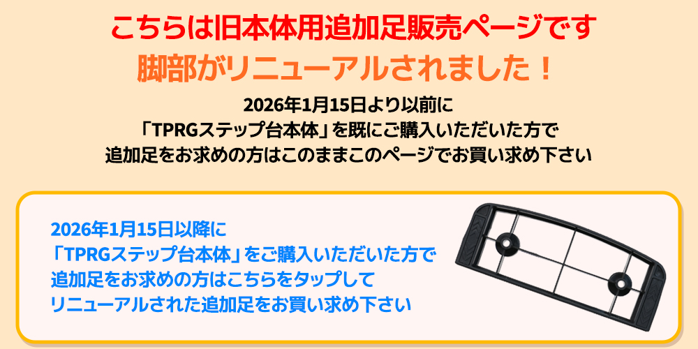 本製品はリニューアル前(旧仕様)のTPRGステップ台専用パーツです。