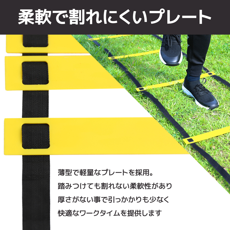 俊敏性・機敏性のトレーニング、屋内・屋外どちらでも使用可能なトレーニングラダーとマーカーコーンのセットです サッカーやフットサル、バスケットボールのトレーニングにオススメ