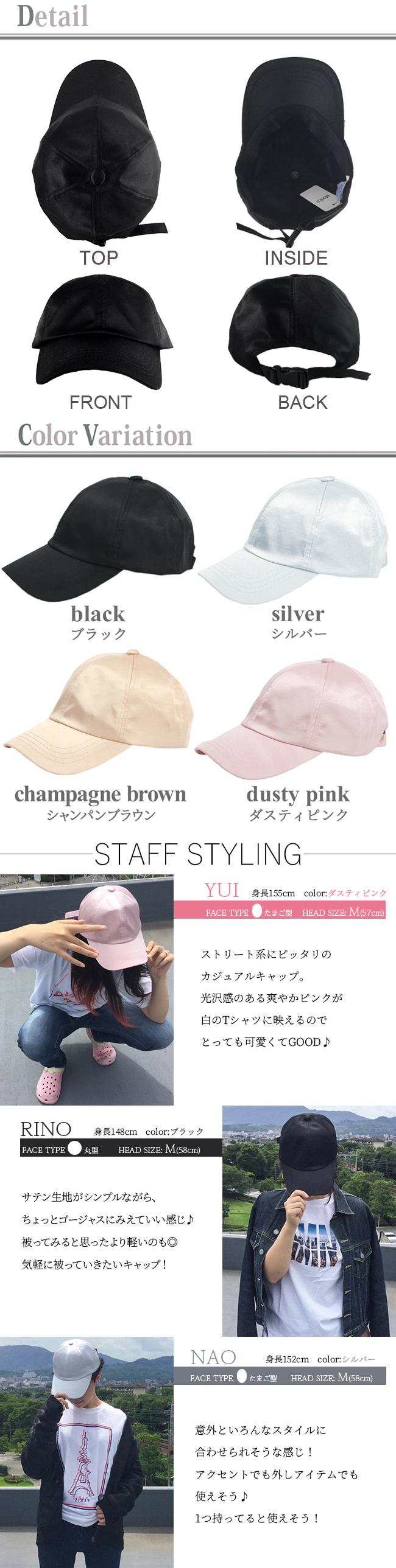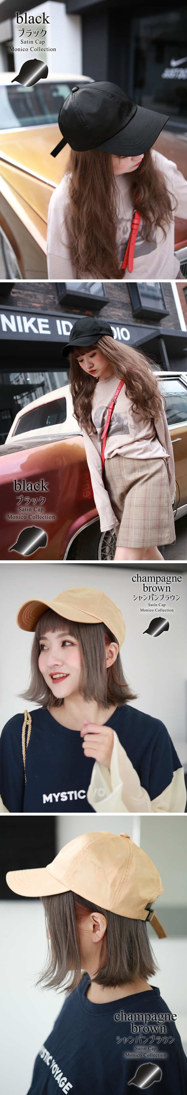 カジュアルになり過ぎない大人のサテンキャップ。シンプルなデザインとベーシックカラーでコーディネートもしやすい。ユニセックス使用でサイズ調節可能★全4色