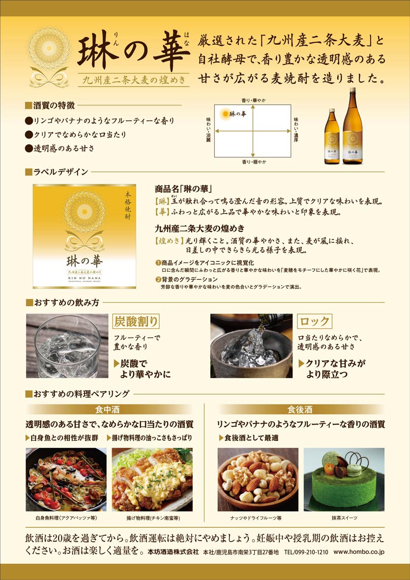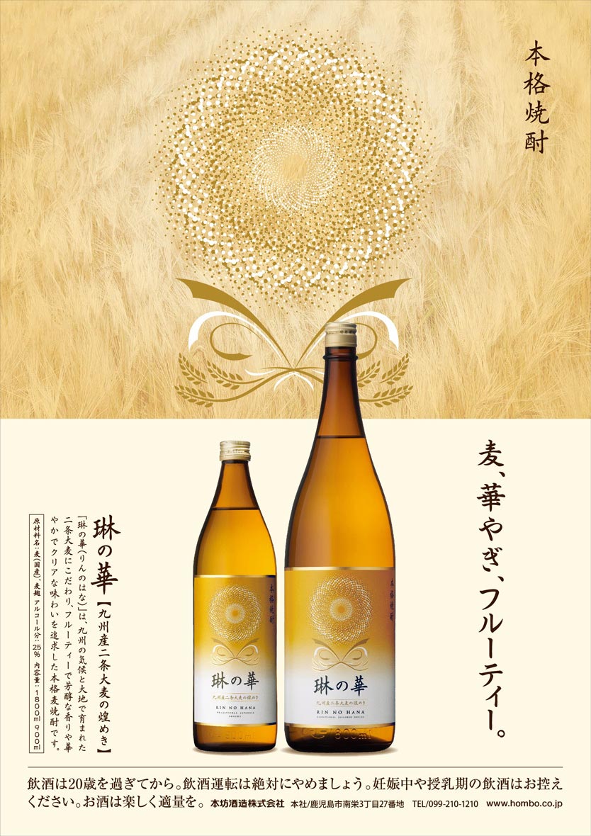 ●九州産「二条大麦」と自社酵母で造った本坊酒造の麦焼酎です。