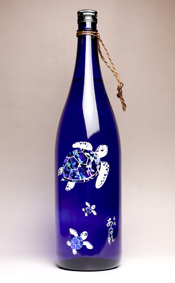 ブルーの海に親子のウミガメが優雅に泳いでいる・・涼しさを感じながら楽しめる五穀焼酎!個性的な味わいですが口あたりはやさしく美味しいです