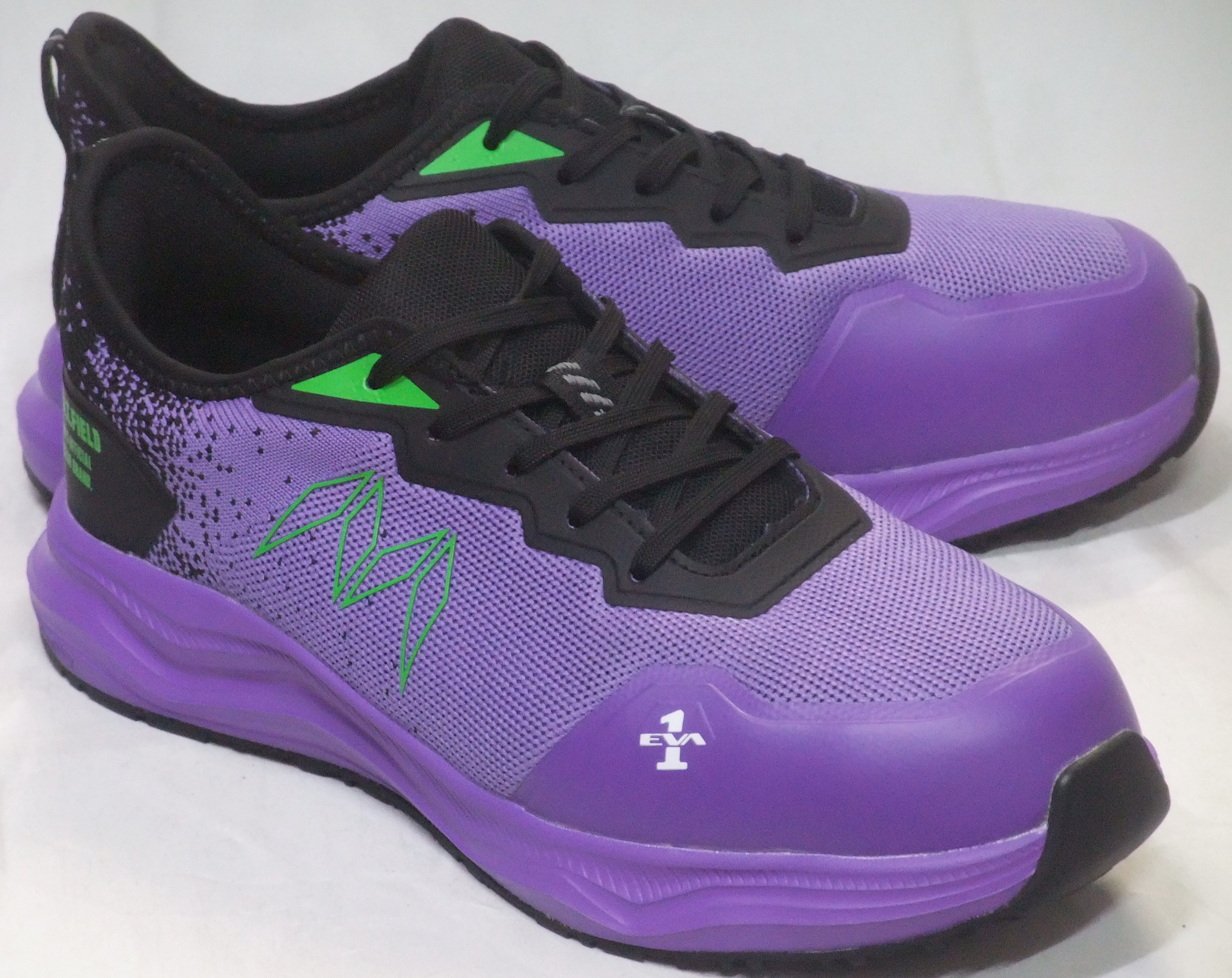 A.T.FIELD×MANDOM エヴァンゲリオンコラボモデル セーフティワークシューズ TG-003E 初号機 パープル メンズ ニット素材 先芯入り グリップ底 安全靴