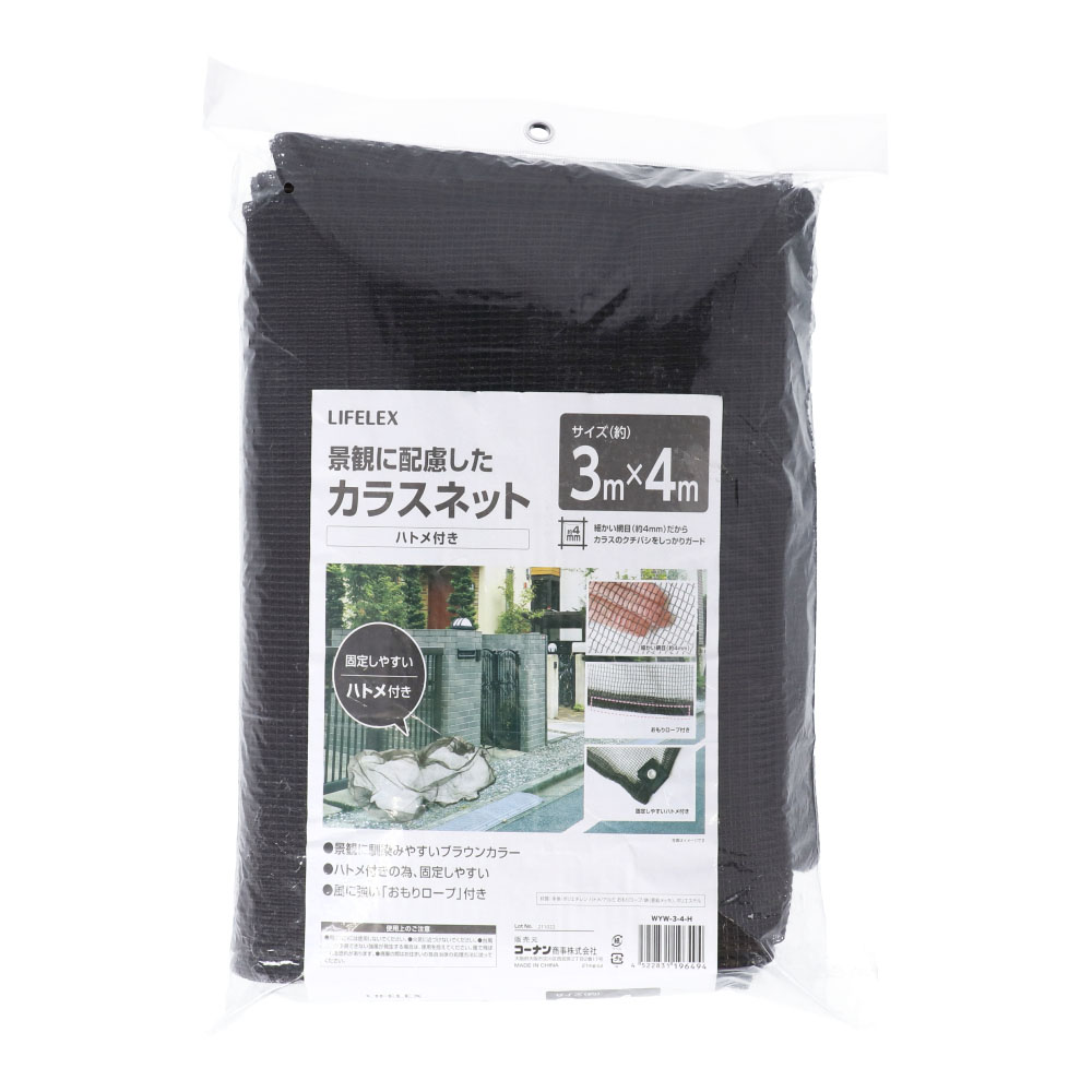 コーナンオリジナル LIFELEX 景観に配慮したカラス ネット(ハトメ付き)3×4M/ゴミネット カラスよけネット 防鳥ネット ライフレックス