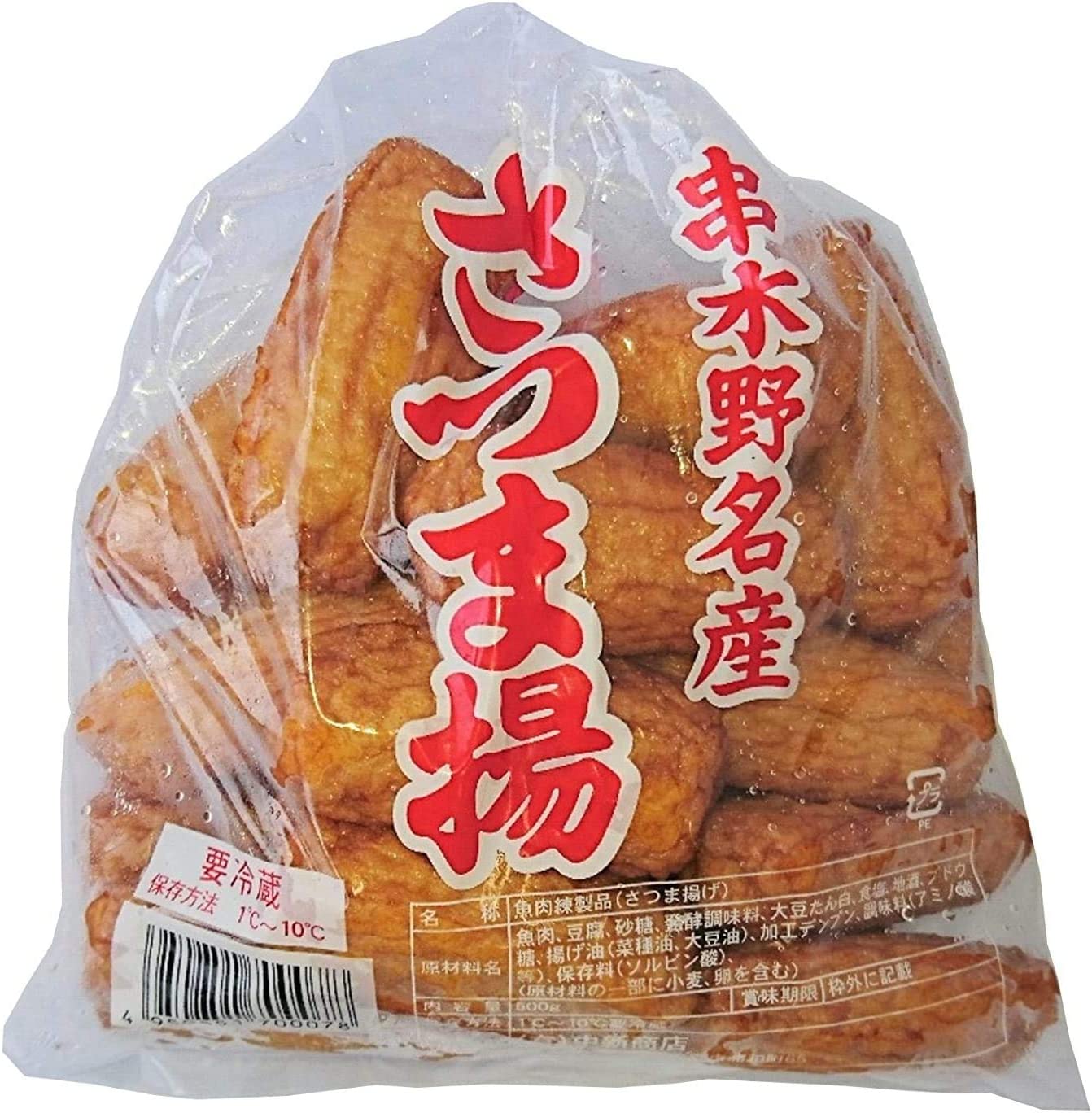 魚肉、豆腐、砂糖、発酵調味料、大豆たん白、地酒、食塩、ブドウ糖、揚げ油(菜種油、大豆油)、加工デンプン、調味料(アミノ酸等)、保存料(ソルビン酸)