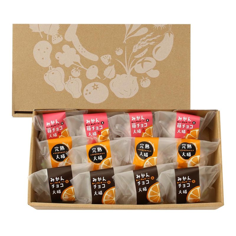 12個入り(契約農家みかん 完熟大福×4個、みかん&チョコ大福×4個、みかん&苺チョコ大福×4個)