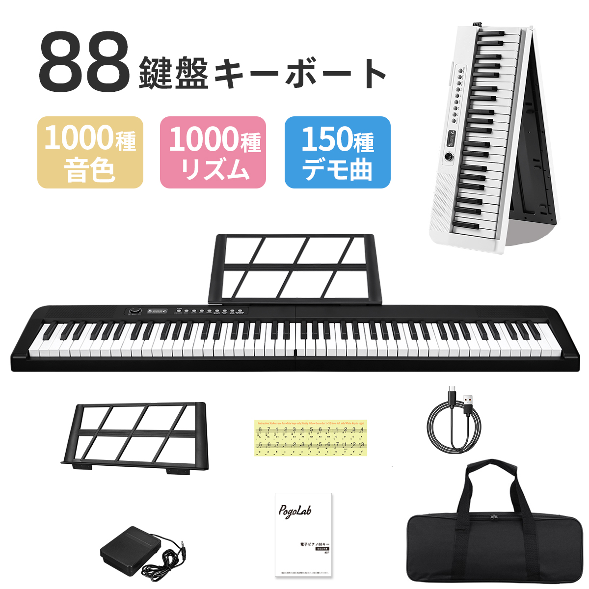 1年保証 電子ピアノ 88鍵 指力感知 Bluetooth 小型 バッテリ内蔵 サスティンペダル MIDI対応 Type-C 譜面台 軽量 充電式 コンパクト 折りたたみ式 専用ケース付