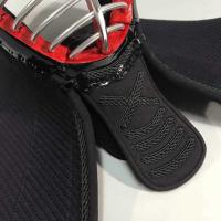 こちらの商品は、基本仕様は「仁」の鹿革上級モデルを、ほぼそのまま(異なる点は面垂れ具の目刺し→ナナメ刺しに変更のみ)に、ヘリ革と顎のみを合成皮革にして、お求めやすくしたモデルです。合成皮革と言っても最高級のものを使用しておりますので、耐久性はもちろん、外観も鹿革のモデルと比較しても、ほとんど見分けがつきません。お手入れも楽なので、学生さんなど稽古量の多い方に最適です。丁寧に作り上げたミシン刺し最高ランク商品です。防具にこだわりを持った方にこそ、ぜひ使って欲しい、そんな防具です。店主オススメの一級品です。
