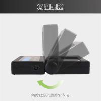 電源ケーブル要らずに、2個4単電池で起動出来ます。長時間使用可能です。伸縮性のあるコードで、表示台の角度を90度調節できます。