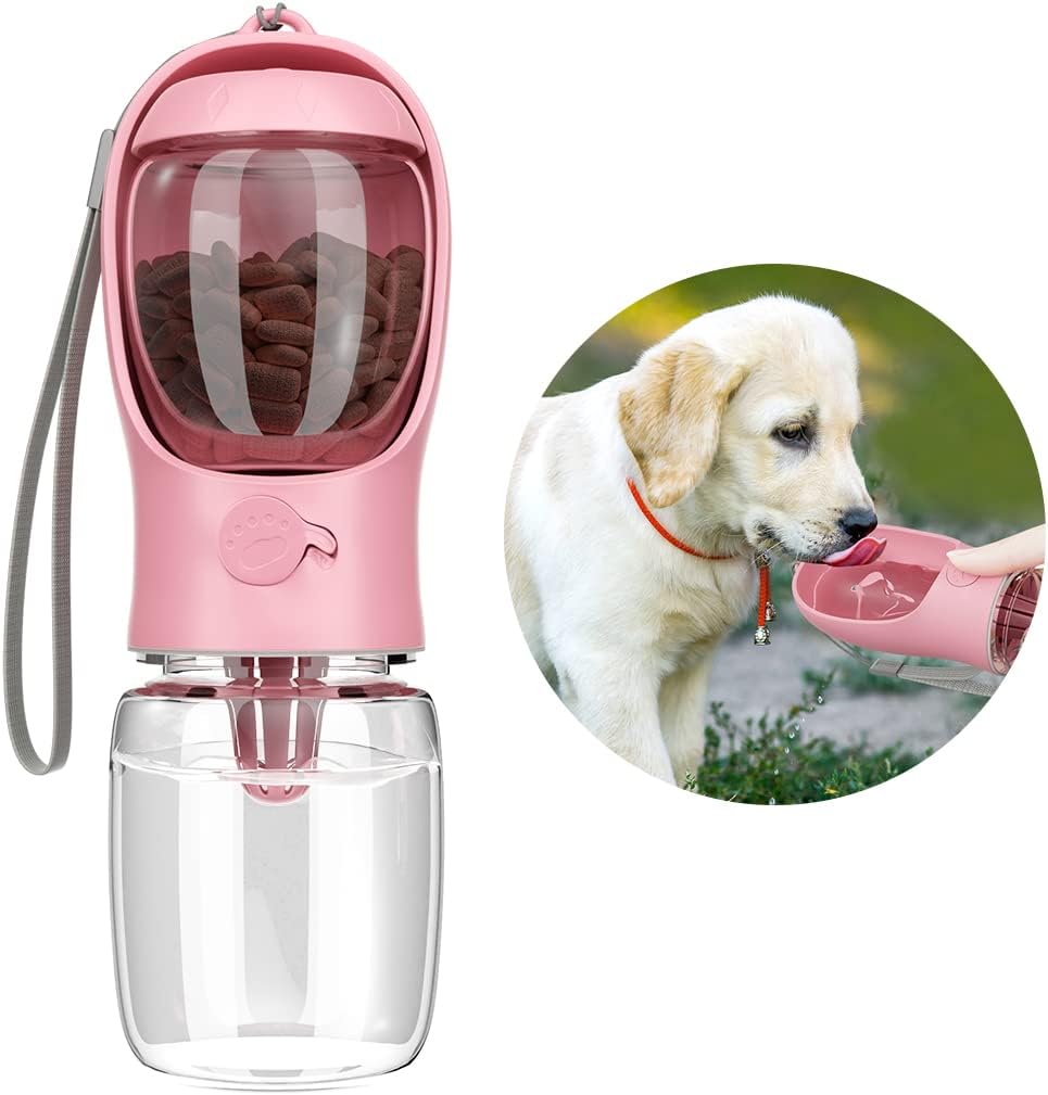 このボトルは水を入れるだけでなく、ドッグフードを持ち運ぶこともでき、いつでもどこでも食べたり飲んだりできます。外出時にペットが外で空腹や渇きを心配する必要がなく、他の給水器より便利です。水と餌は1台に分けて保管することができます。1台2役ですがコンパクトです、それに、ボトルにストラップが付いており、持ち運びに便利です、犬と一緒に散歩、旅行するのに最適です。