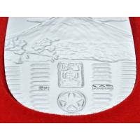 表面にはシンプルなゴザ目模様が刻まれ、中央にはたなびく雲を背に「富士山」の迫力ある情景が趣豊かに刻まれており、上下の円枠にはそれぞれ「富士」と「桜」の紋様をあしらいました。