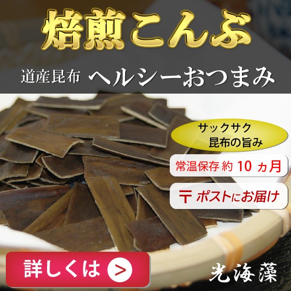 函館・南かやべ産の昆布を、味付けや添加物を使用せずに、特殊な方法で焼き上げました。
