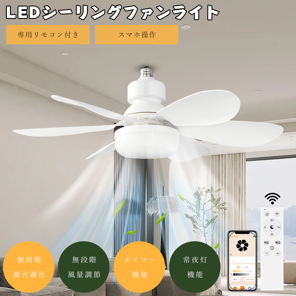 シーリングライト ファン付き 6畳 8畳 E26口金 LED シーリングファンライト リモコン付き 調光調色 風量調整 サーキュレーター シーリングファンライト LED