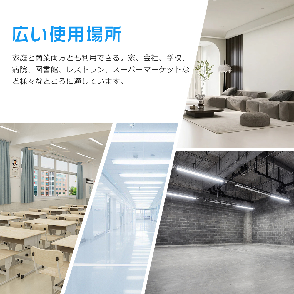 | 【省エネ】 | このL本製品費電力でありながら、明るく均一な高効率の発光を実現しています。省エネ設計により、電気料金の削減と環境への負荷軽減が期待できます。1台のLEDベースライトは、従来の蛍光灯2本分の明るさを提供します。 |
