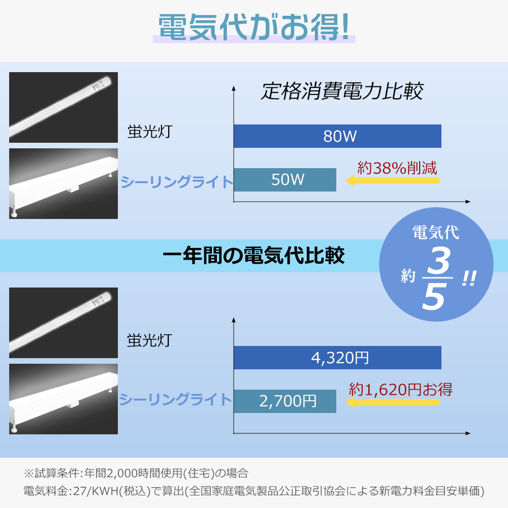 | 【LEDならではの優れた性能 】 | *長寿命:一度設置すれば、約10年間交換不要で、安心して長期間使用できます。(※寿命は光束が70%に低下するまでの時間です。表示は設計寿命であり、製品の寿命を保証するものではありません。) *虫が寄りにくい設計:LEDは紫外線をほとんど出さないため、虫が寄り付きにくく、特に夏場や窓を開ける季節に効果的です。 |