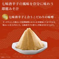 | <つくり方> 「調味みそ」と「具」の袋の中身をお椀にあけ、熱湯(160ml)を注いでよくかき混ぜてください。かやく(七味唐辛子)はお好みでかけてお召し上がりください。 ●好みにより、湯の量を加減してください。 ●熱湯の取り扱いには十分ご注意ください。 ●辛さの感じ方には個人差があります。辛味の苦手な方や小さなお子様は十分ご注意ください。 ●開封した個包装は一度に使い切ってください。 ●保存中に味噌の色が赤みを帯びることがありますが、品質には問題ありません。 ※品質管理のため、不良品以外の返品はお断りしております。ご了承くださいませ。 ※ラッピング・熨斗不可 ※製品の仕様変更などに伴い、商品のデザインなどが変わる場合がございます。予めご了承下さい。 ※ご注文数量によっては、ヤマト運輸ではなく路線便を利用させていただく場合がございます。 ※不明な点がございましたら、お気軽にお問い合わせ下さい。 |