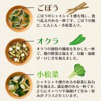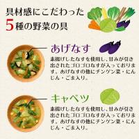 | 栄養成分表示: 【キャベツ汁(1食(18.1g)あたり)】エネルギー 38kcal、たんぱく質 1.6g、脂質 0.7g、炭水化物 6.4g、食塩相当量 1.9g 【小松菜汁(1食(16.8g)あたり)】エネルギー 34kcal、たんぱく質 1.7g、脂質 0.8g、炭水化物 4.9g、食塩相当量 2.0g 【ごぼう汁(1食(16.4g)あたり)】エネルギー 31kcal、たんぱく質 1.5g、脂質 0.6g、炭水化物 4.9g、食塩相当量 2.0g 【あげなす汁(1食(16.5g)あたり)】エネルギー 36kcal、たんぱく質 1.5g、脂質 1.4g、炭水化物 4.3g、食塩相当量 1.9g 【オクラ汁(1食(16.2g)あたり)】エネルギー 32kca、たんぱく質 1.8g、脂質 0.9g、炭水化物 4.1g、食塩相当量 2.0g |