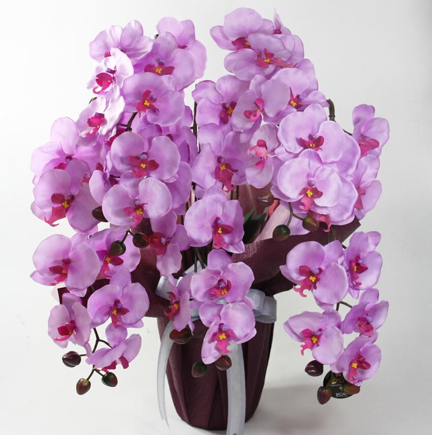 信頼の光触媒造花・人工観葉植物のブランド「光の楽園」消臭・抗菌効果のある、光触媒「V-CAT」を使用し、お部屋のインテリアや各種お祝いのギフト(プレゼント)として、新築祝い・開店祝い・開業祝い・開院祝い・引越し祝い・母の日・敬老の日・誕生日など記念日の贈り物として人気があります。  ◇商品名:胡蝶蘭ラベンダー(5本立)  ◇加工:光触媒  ◇商品サイズ:約 幅50cm × 奥行40cm × 高さ60cm※商品サイズは、花や葉が広がった状態での全体サイズ(器も含めた高さ)になります。  ◇器:ポリプロピレン   ◇生産国:  ◇各有料対応となりますが、立札、メッセージカード、熨斗対応、ラッピング可能でございます。OK  ※北海道・沖縄・離島は、別途追加送料の加算がございます。予めご了承ください。
