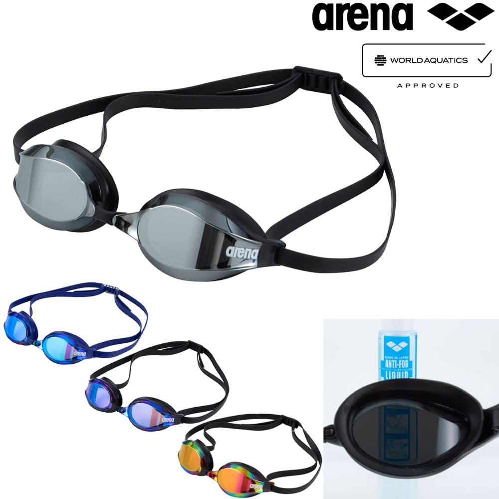 アリーナ ARENA 水泳 レーシングゴーグル Q-CHAKU2 ミラーレンズ クッション付き リノンくもり止め WA承認モデル 競泳 AS5SGG20U FINA承認