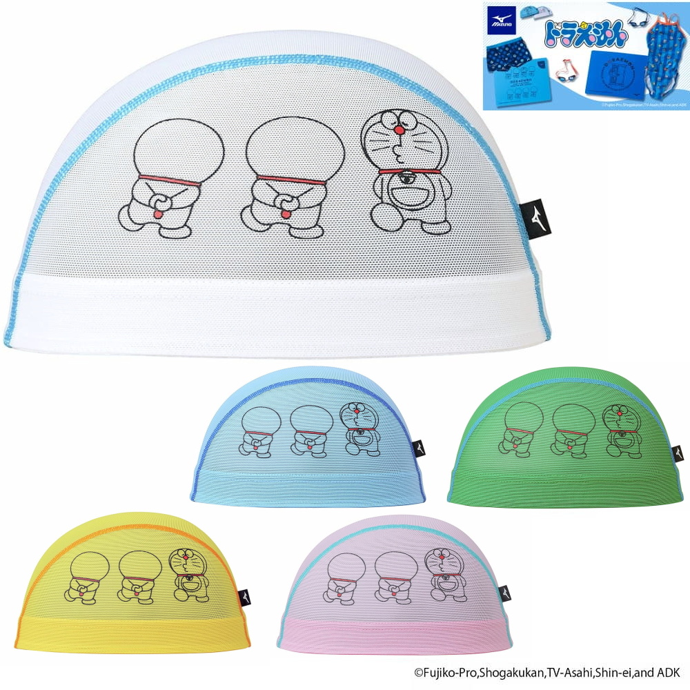 ミズノ MIZUNO 水泳 メッシュキャップ ドラえもん 水泳小物 スイムキャップ 水泳帽 2024年春夏限定企画モデル N2JWB091