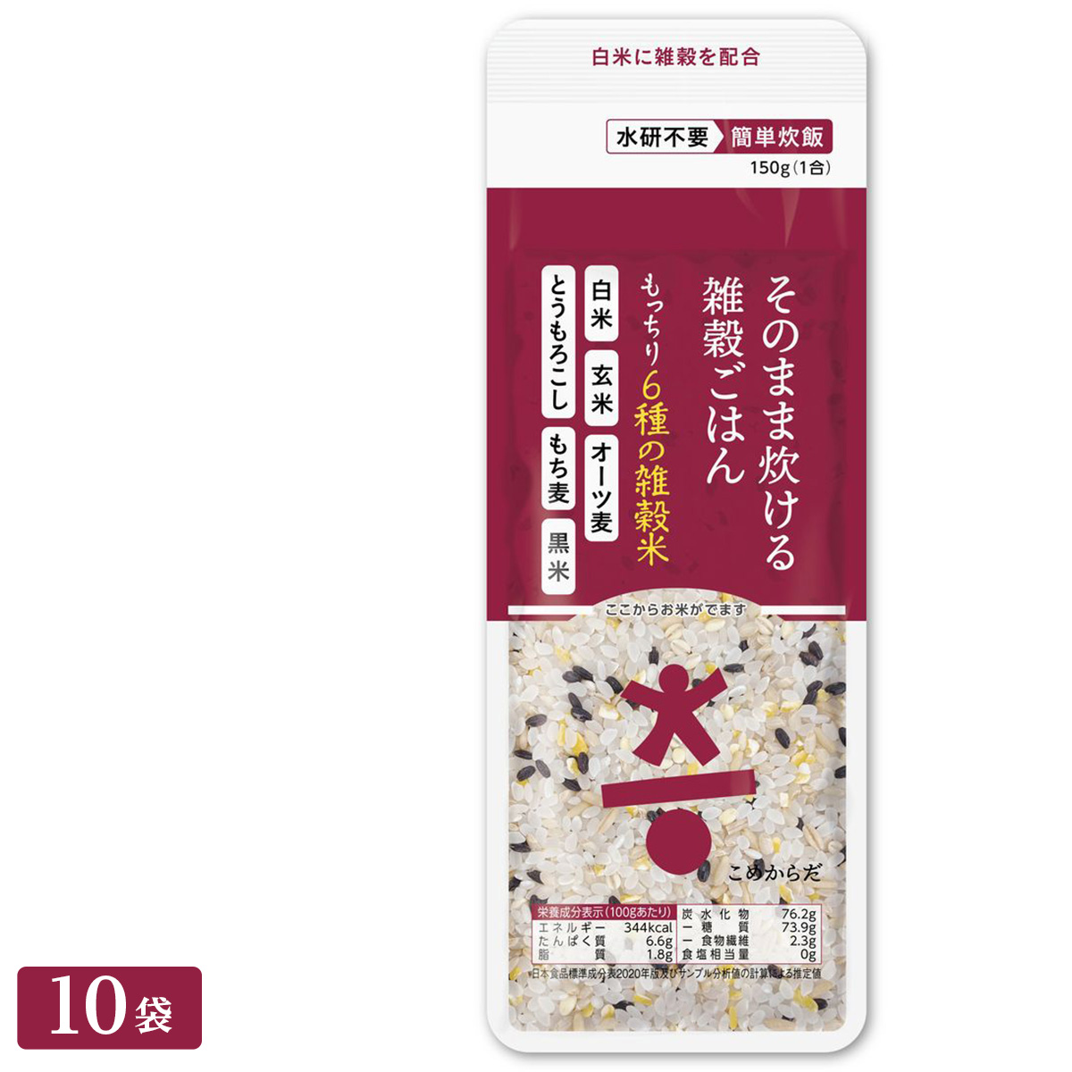 ・原料配合は、うるち米(無洗米)、金のいぶき玄米、もち麦、オーツ麦、とうもろこし、黒米を配合。