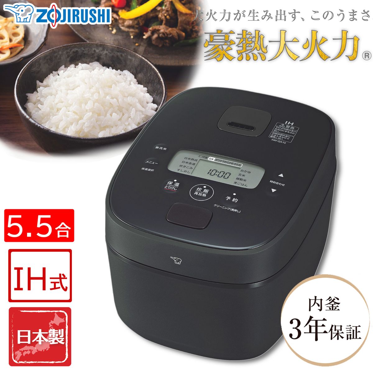 ※IH炊飯ジャーは強い火力で炊飯するため、炊飯中に「ブーン」という冷却ファンが回る音がします。また、炊飯中や保温中に「ジー」という音がしますが、マイコンが火力を調整している音です。故障ではありませんので安心してお使いください。