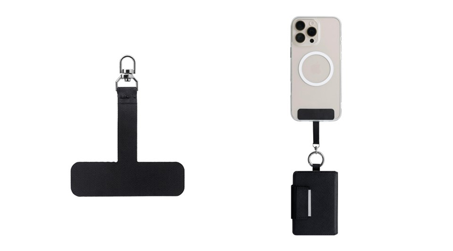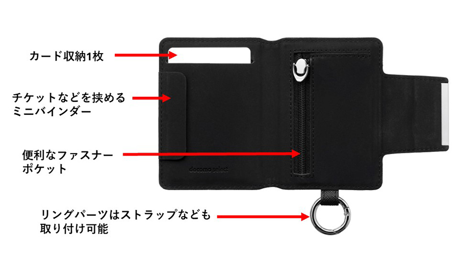 ■落下防止パーツ付き付属のストラップシートをケースに装着することで、ウォレットの落下を防止。