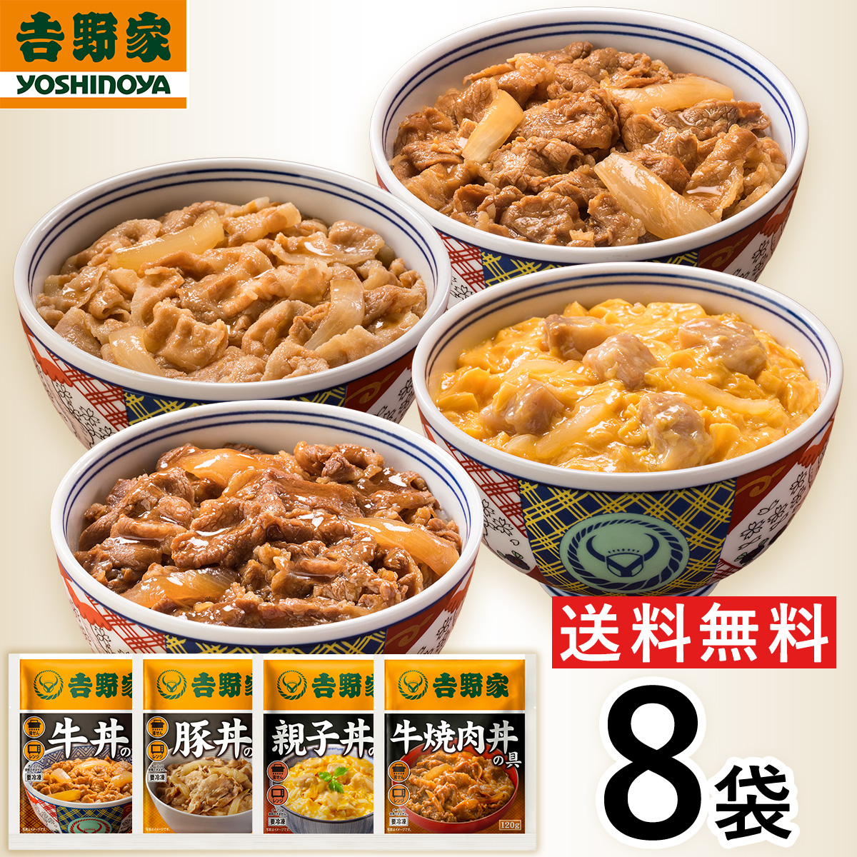 【冷凍】 \レビューキャンペーン中/ 吉野家 人気4種8袋セット(牛丼・豚丼・牛焼肉丼・親子丼 各2袋) お試し 肉 夜食 時短 ストック 時短 送料無料