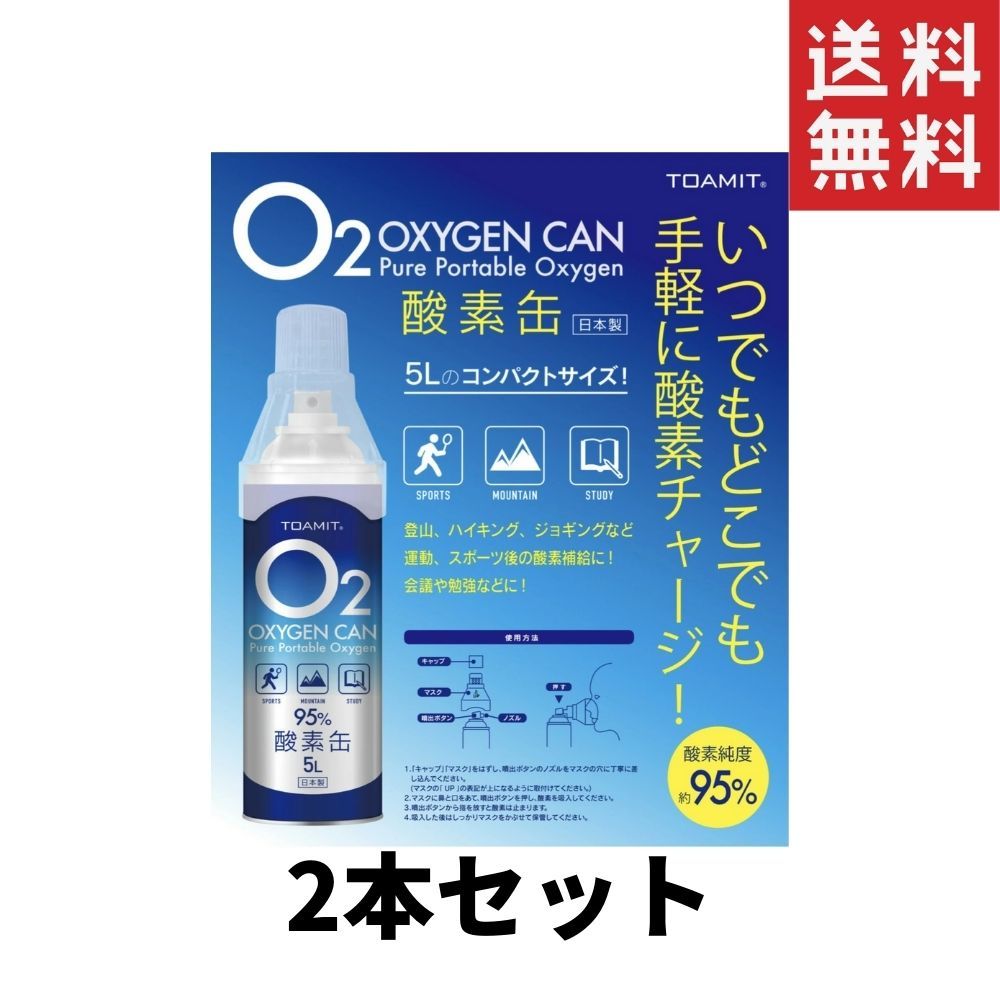 【日本製】東亜産業 酸素缶 5L TOA-O2CAN-003 酸素濃度95% 携帯酸素スプレー 酸素ボンベ 日本製 高濃度2個