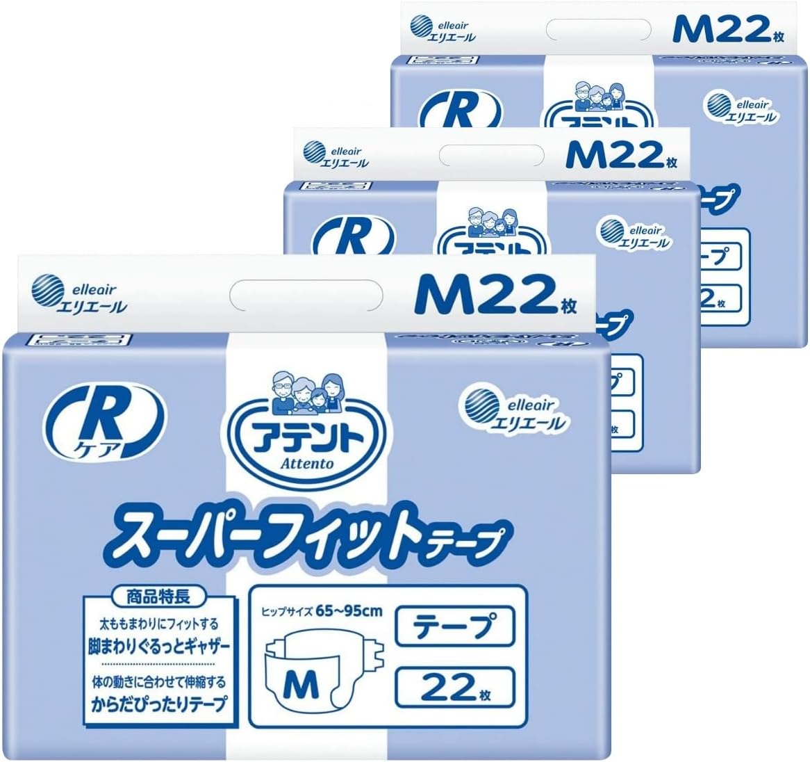 大人用紙おむつ テープ止め 介護 アテントRケアスーパーフィットテープMサイズ 22枚×3袋 1ケース