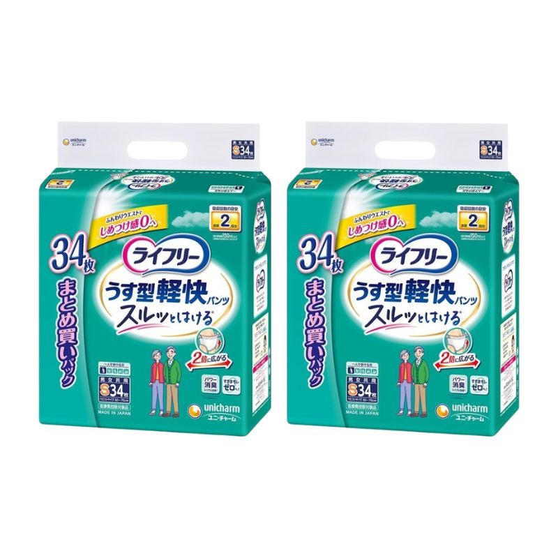 ライフリー うす型軽快パンツ Sサイズ 1ケース (34枚×2パック) 大人用紙おむつ 尿漏れ 大容量 ユニ・チャーム