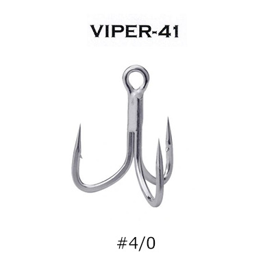 VIPEFR-41はルアーアクションヘの影響を減らしつつ、貫通力と強度、保持力を最大限に高めた4X線形トレブルフックです。