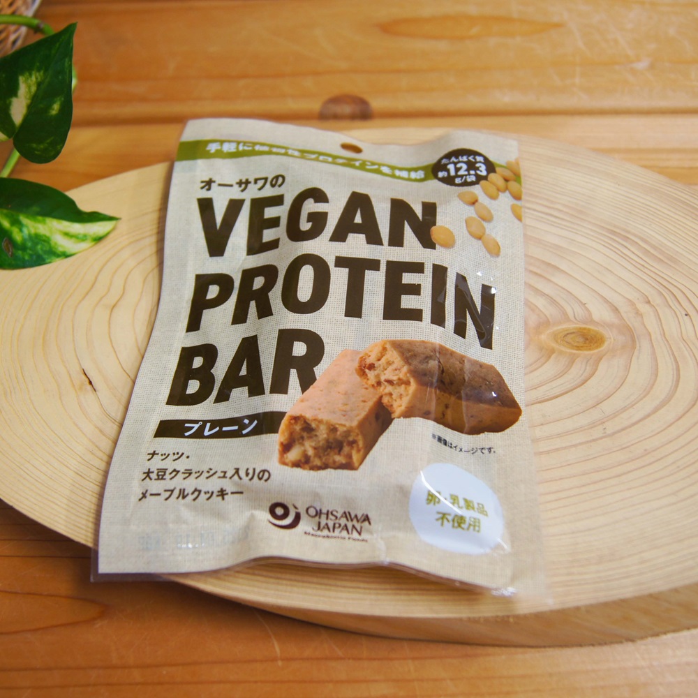 オーサワ、ムソーの自然健康食品。ビーガンプロテインバー、プレーン。手軽に植物性プロテインを補給できる。メープルのやさしい甘み。砂糖・卵・乳製品不使用。ナッツと大豆クラッシュが食感のアクセントに。【メーカー名】オーサワジャパン【内容量】2本(約60g)【原材料】小麦粉[小麦(北海道)]、オーサワの有機メープルシロップ、なたね油、えんどう豆たんぱく[えんどう豆(フランス他)]、大豆クラッシュ[大豆(国産)]、アーモンドパウダー[アーモンド(アメリカ)]、アーモンド・くるみ(アメリカ)