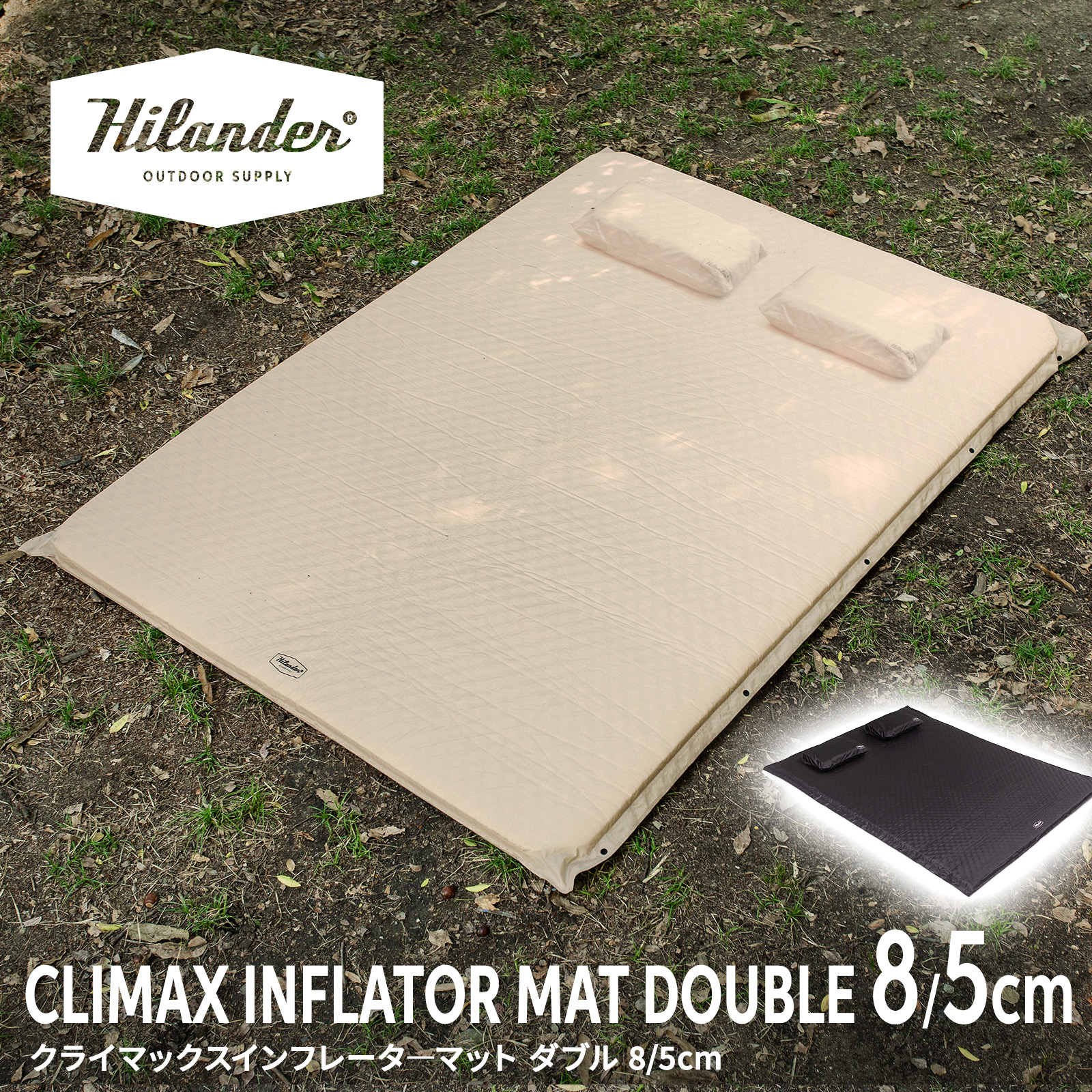 アウトドアマット ハイランダー クライマックスインフレーターマット ダブル 8cm・5cm 1年保証 8cm ダブル ベージュ