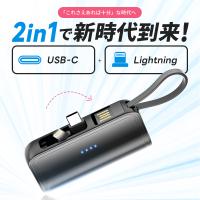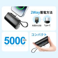 モバイルバッテリー 2in1 急速充電器 残量表示 小型 5000mAh 直挿し コネクター内蔵 2Way蓄電 収納式コネクタ 2.4A MFI認証 PSE認証済 iPhone/Android対応